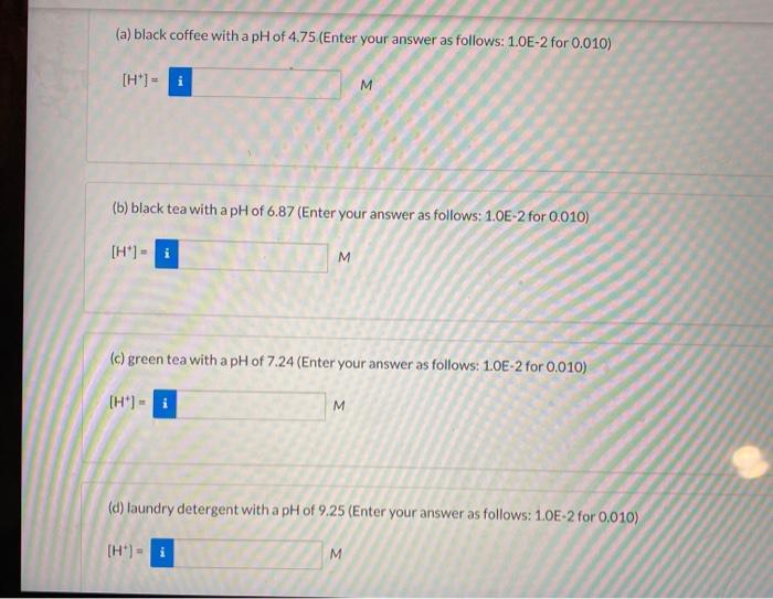 Solved A Black Coffee With A Ph Of 4 75 Enter Your Answer Chegg Com